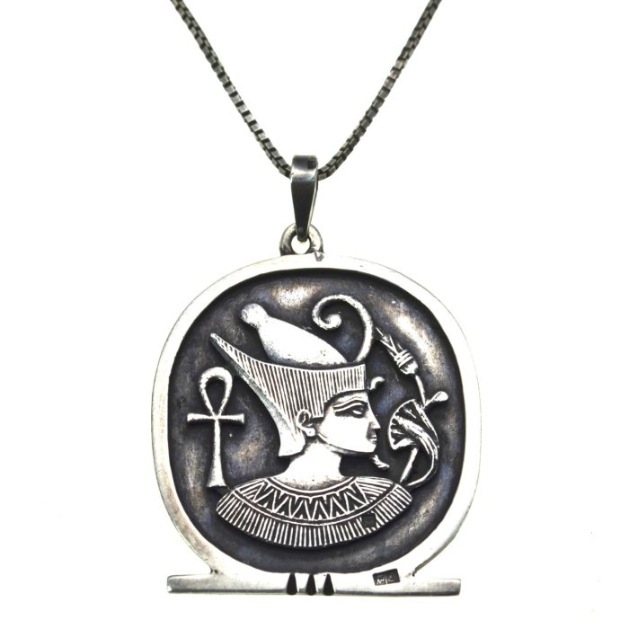 Lantul din argint cu un pandantiv din argint, model egiptean cu o reprezentare a legendarului faraon Menes, adauga un plus de rafinament ai eleganta fiecarui outfit.