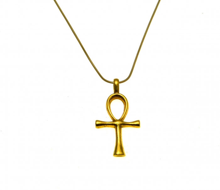 Lant din argint placat aur cu o cruce argint placat aur vintage, model egiptean Ankh (numita si "Crucea vietii" in simbolistica crestina), atelier local