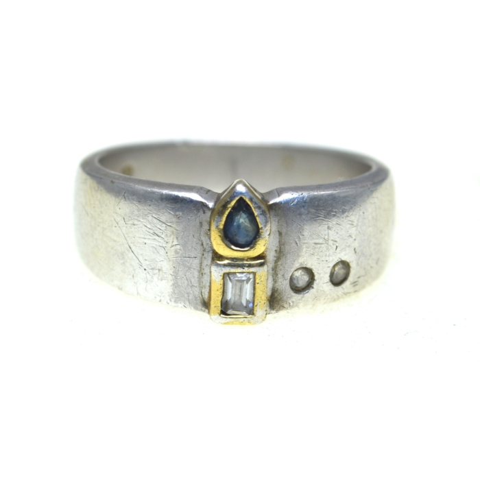 Inel argint vintage, anturaj safir natural si Rock Crystals, design minimalist inspirat din stilul Art Deco