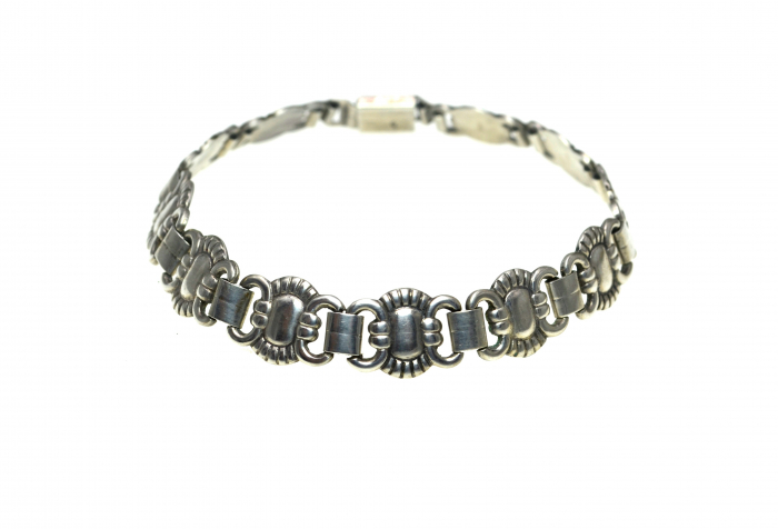 Bratara argint veche, lucrata manual cu elemente ornamentale specifice trecerii de la stilul Jugendstil (Art Nouveau) la Art Deco, atelier german